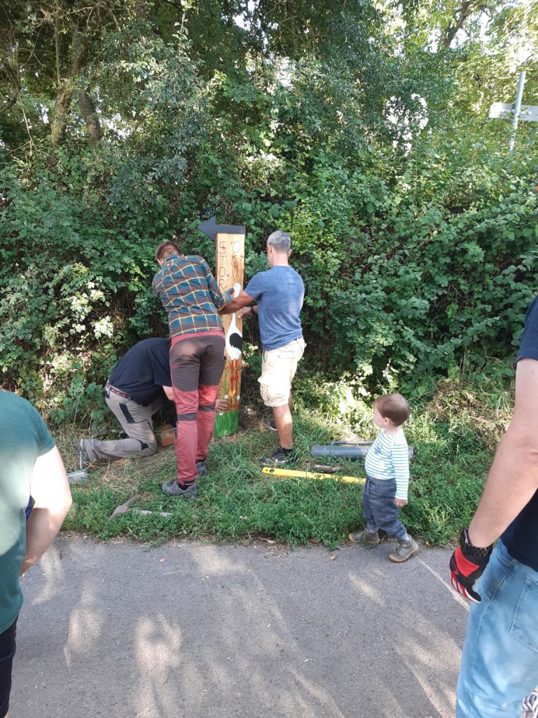 Mit vereinten Kräften haben wir es geschafft, all die tollen Kunstwerke aufzustellen und somit unsere Storchenwiese und vor allem auch den Weg dahin noch schöner zu gestalten.