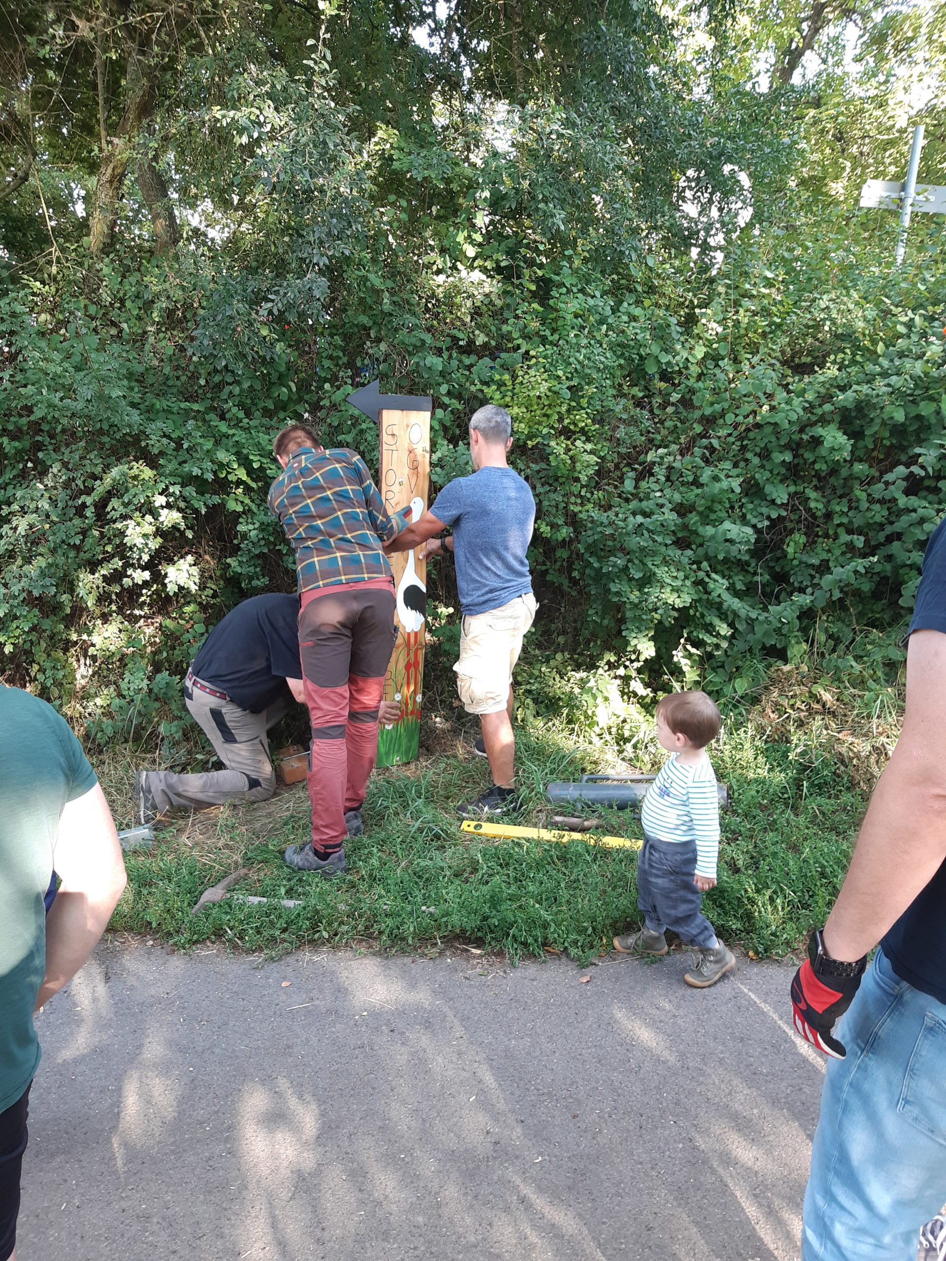 Mit vereinten Kräften haben wir es geschafft, all die tollen Kunstwerke aufzustellen und somit unsere Storchenwiese und vor allem auch den Weg dahin noch schöner zu gestalten.