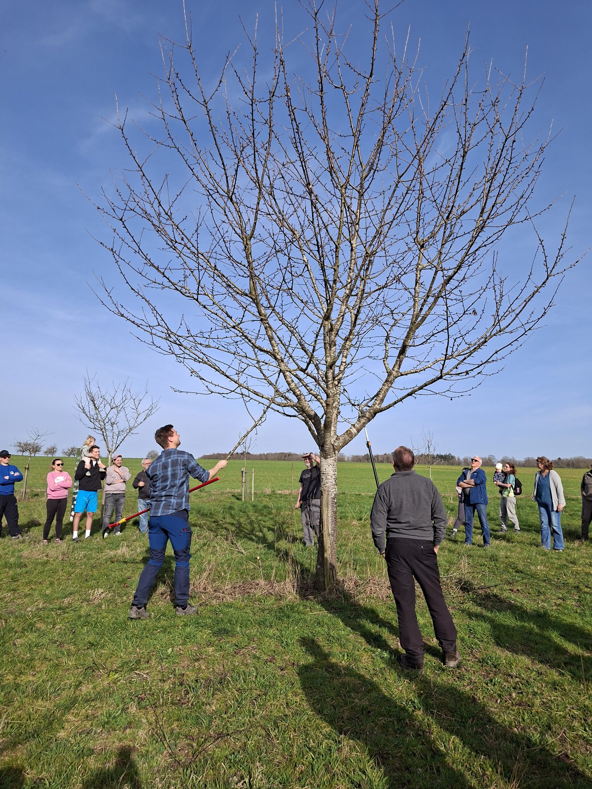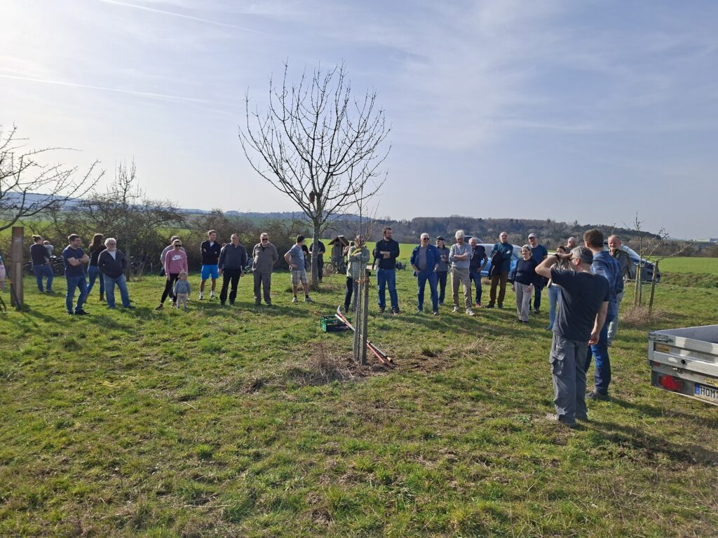 Bei strahlendem Sonnenschein fand am Samstag 07.03.2016 unser diesjähriger Obstbaumschnittkurs auf der Storchenwiese statt. Die vielen interessierten Besucher haben einen Pflanzschnitt an einem Mirabellenbaum gesehen und im Anschluss viel Interessantes über das Schneiden verschiedener Obstbäume erfahren.
